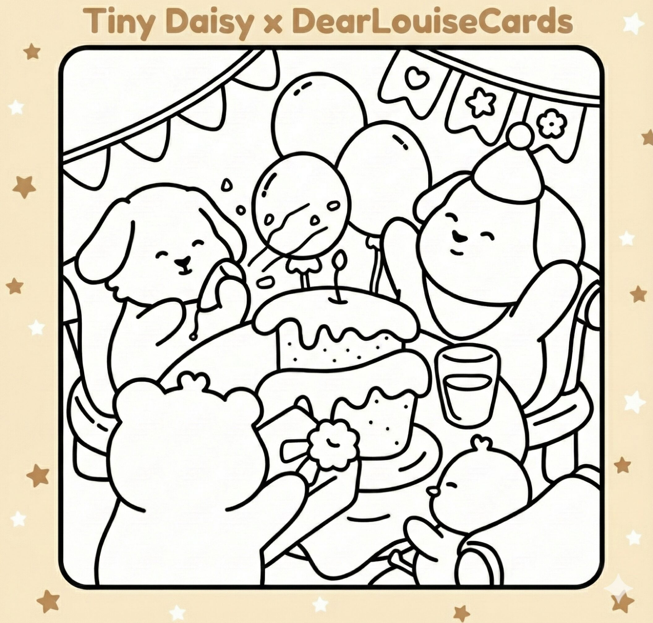 – Licensed Art: Features a stunning, detailed illustration licensed directly from Tiny Daisy Colouring, known for their adorable, cozy, and relaxing line art.