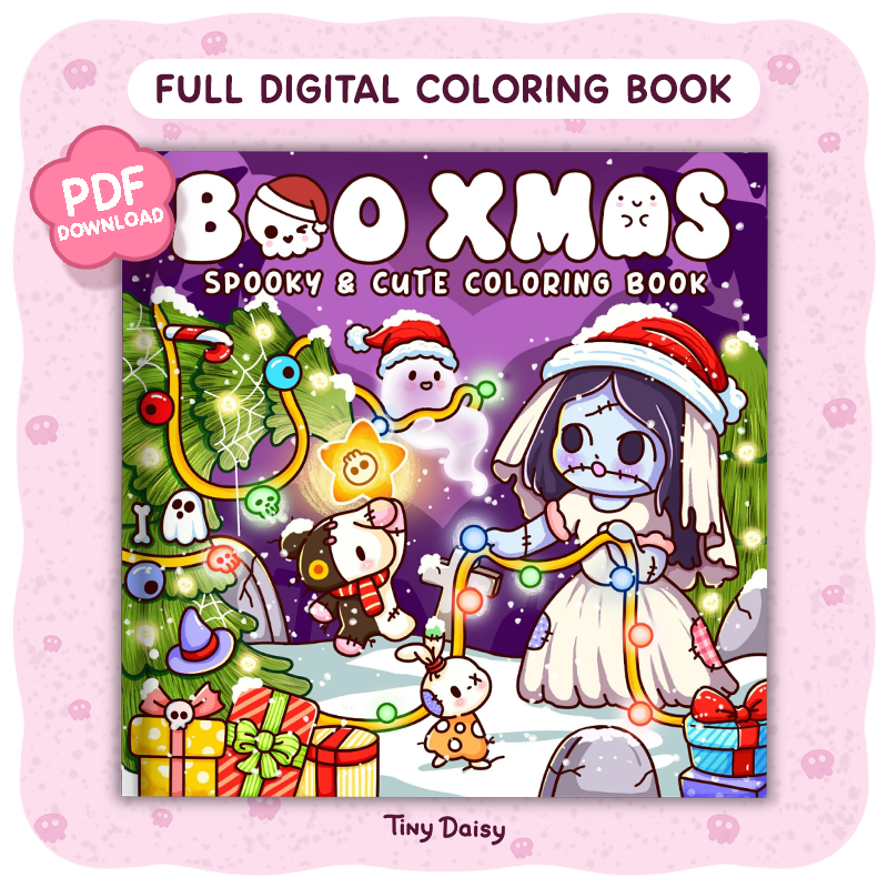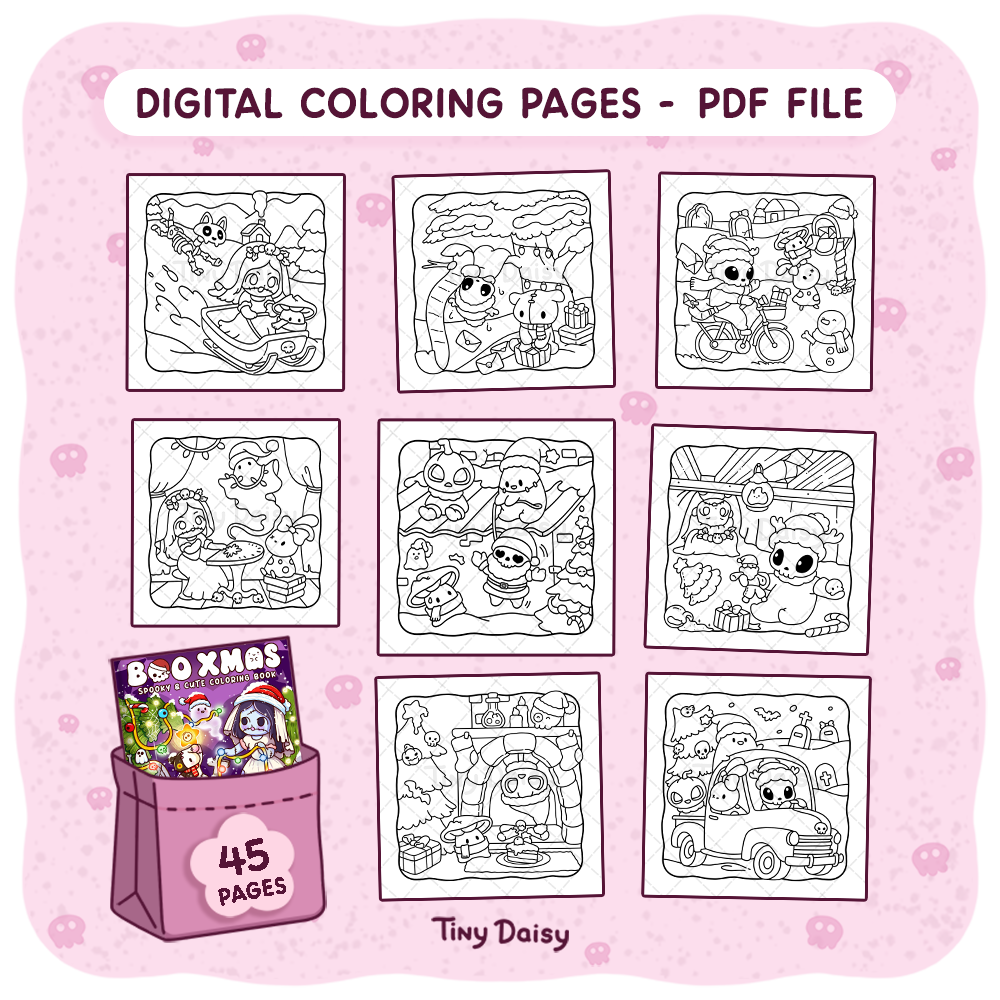 Get ready for a spooky twist on Christmas! Boo Xmas combines cozy holiday cheer with adorable creepy characters like ghosts, skeletons, and pumpkins celebrating in winter wonderland scenes. Perfect for teens and adults who love Halloween and Christmas vibes, this coloring book brings festive fun, cozy relaxation, and a playful touch of fright to your holiday season.