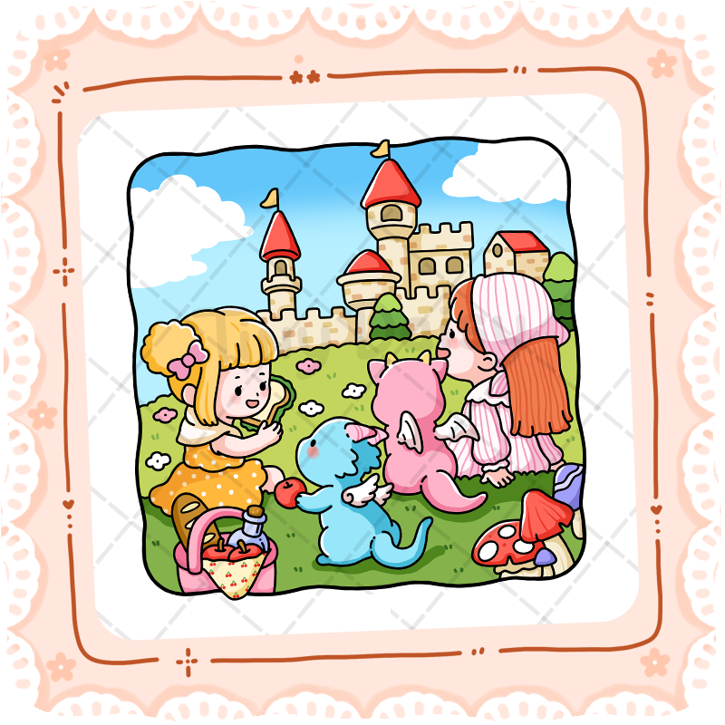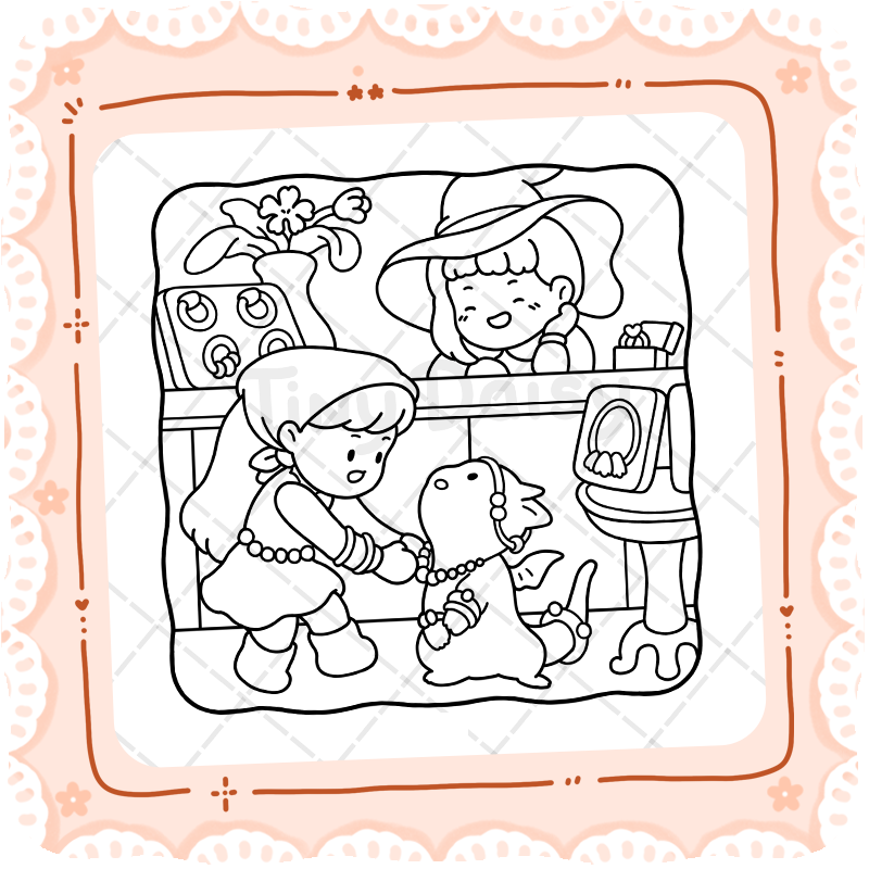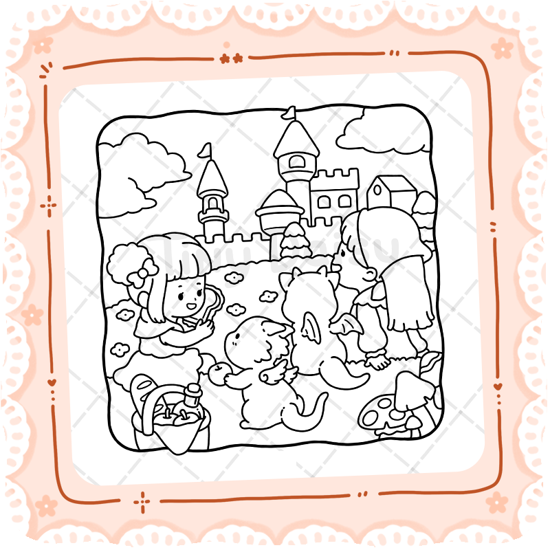 Tiny Tales is a story-based coloring book where each page continues a gentle narrative. Follow a cheerful girl and her little dragons through quiet everyday moments, and bring their story to life with your colors.